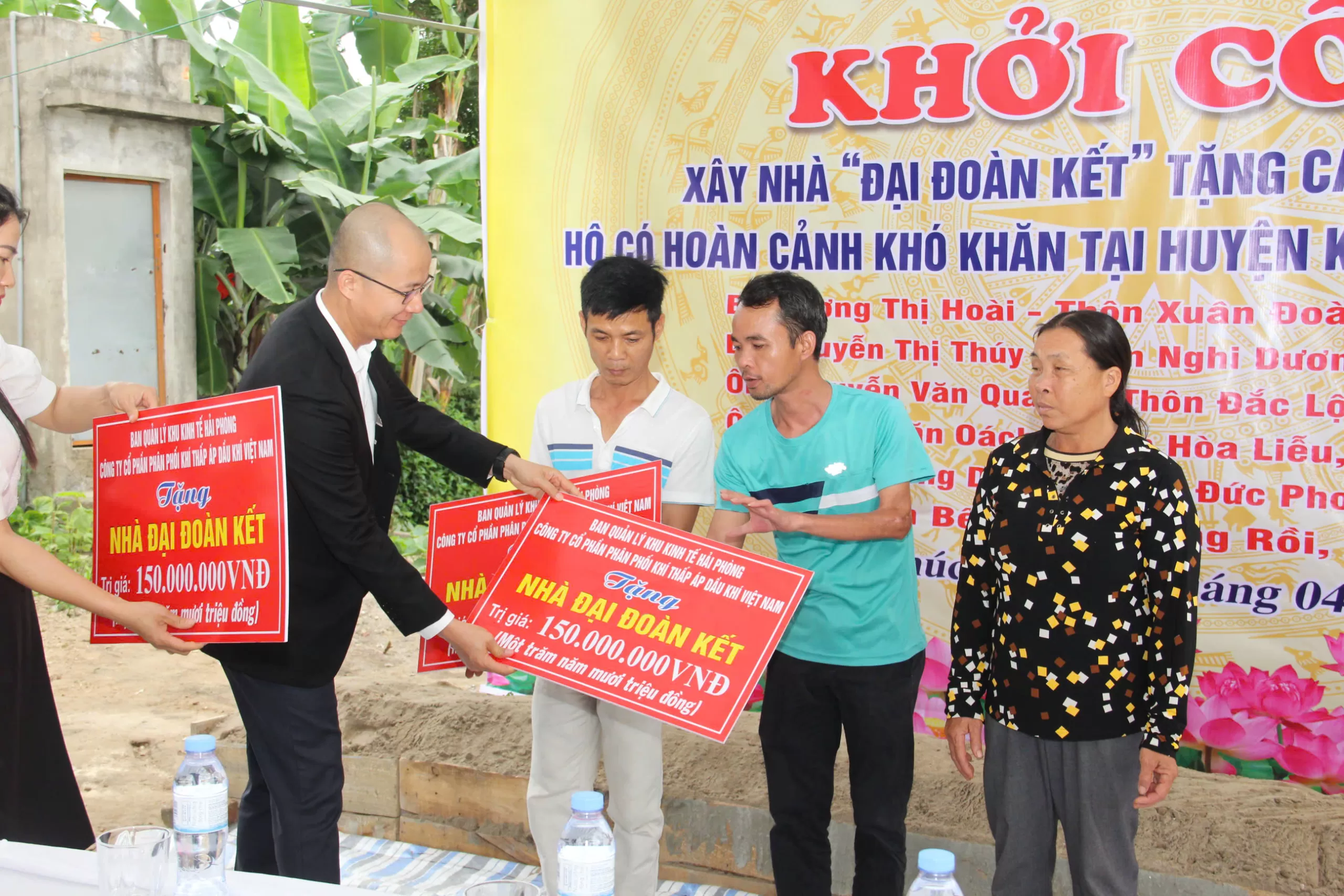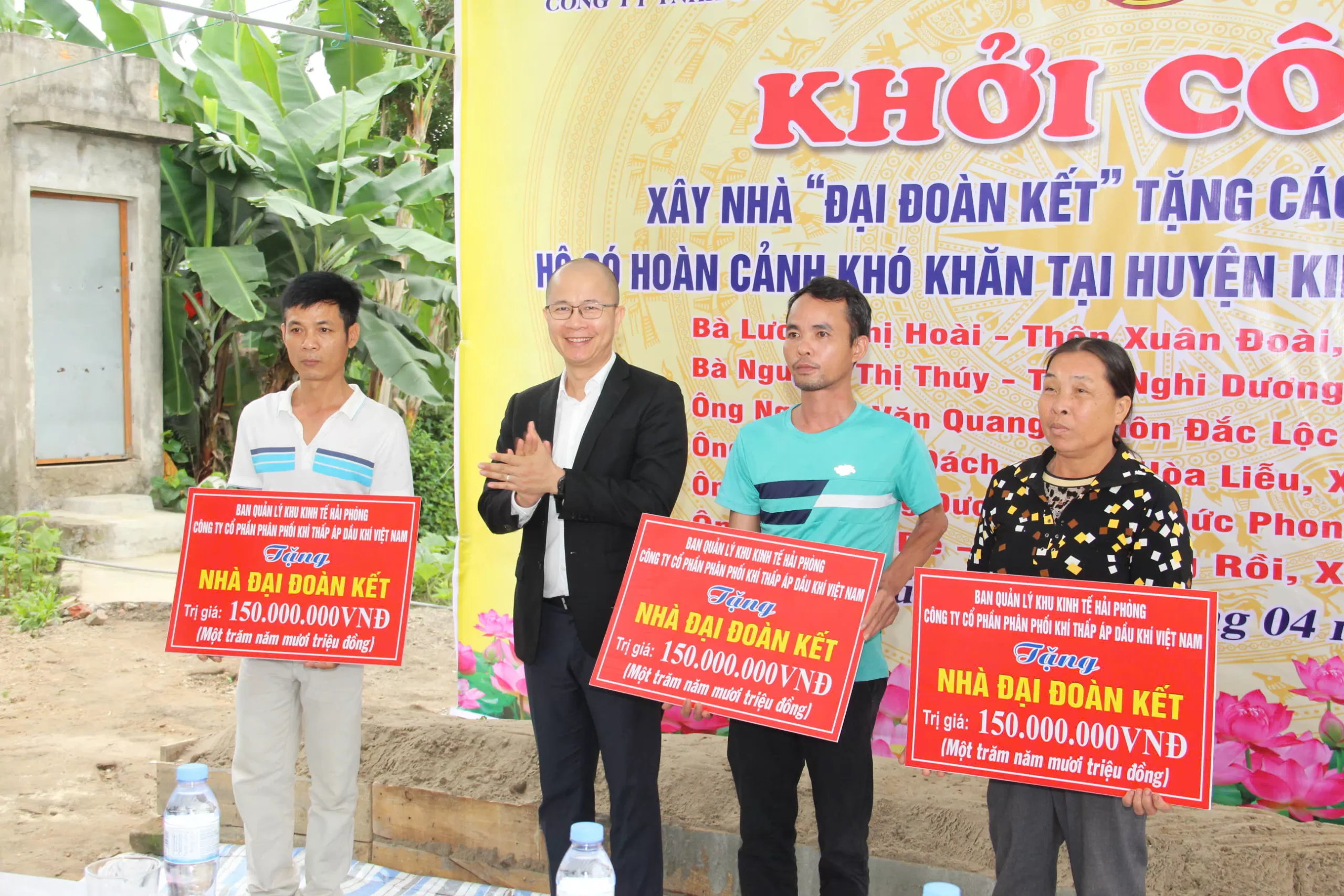 Đồng hành cùng chương trình là hai doanh nghiệp tiêu biểu: Công ty Cổ phần Phân phối khí thấp áp Dầu khí Việt Nam và Công ty TNHH Sơn Trường, với tổng kinh phí hỗ trợ xây dựng là 900 triệu đồng, tương đương 150 triệu đồng mỗi căn nhà. Đây là nguồn lực thiết thực nhằm giúp các hộ gia đình khó khăn xây dựng nhà ở khang trang, ổn định cuộc sống, yên tâm phát triển kinh tế.