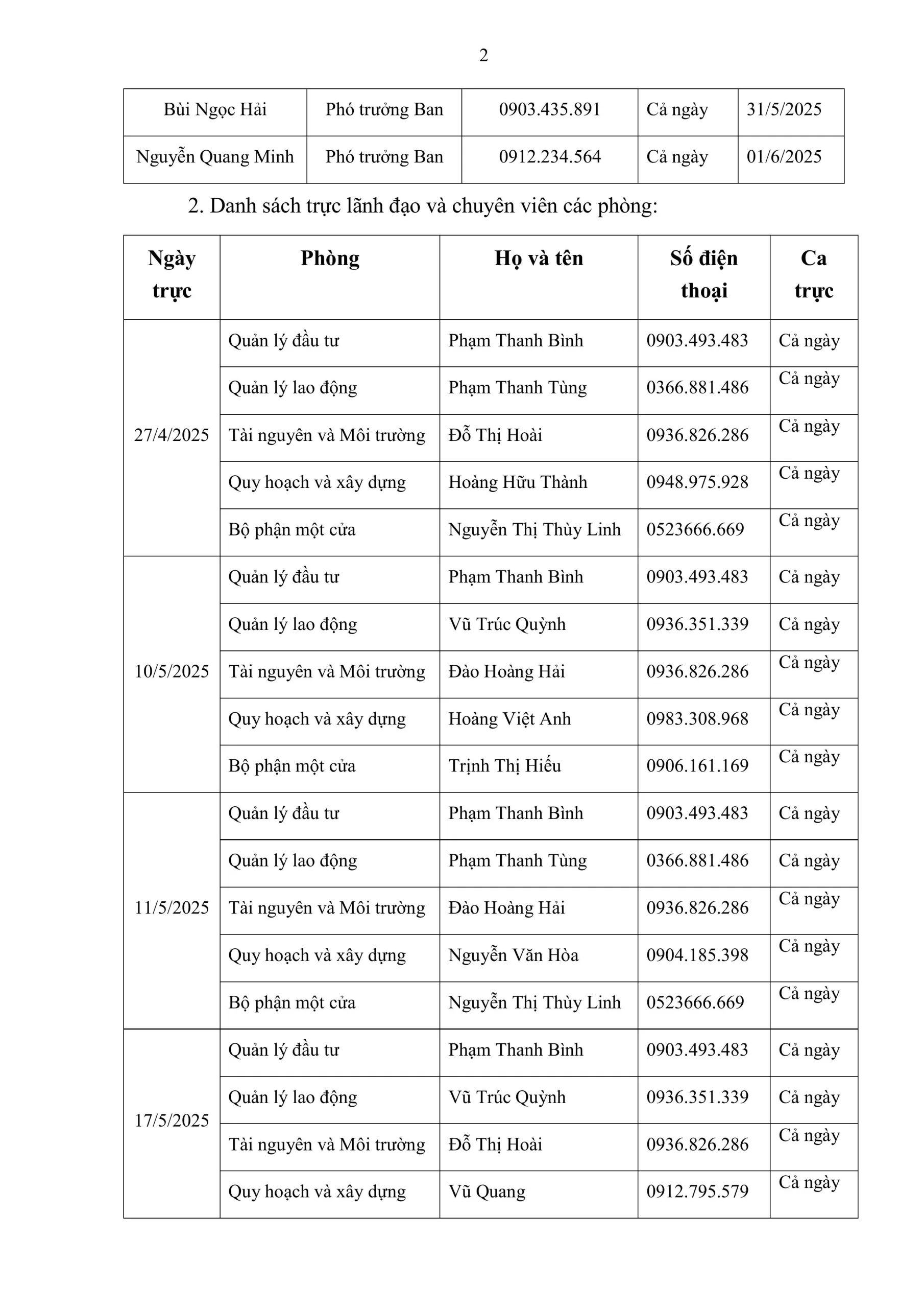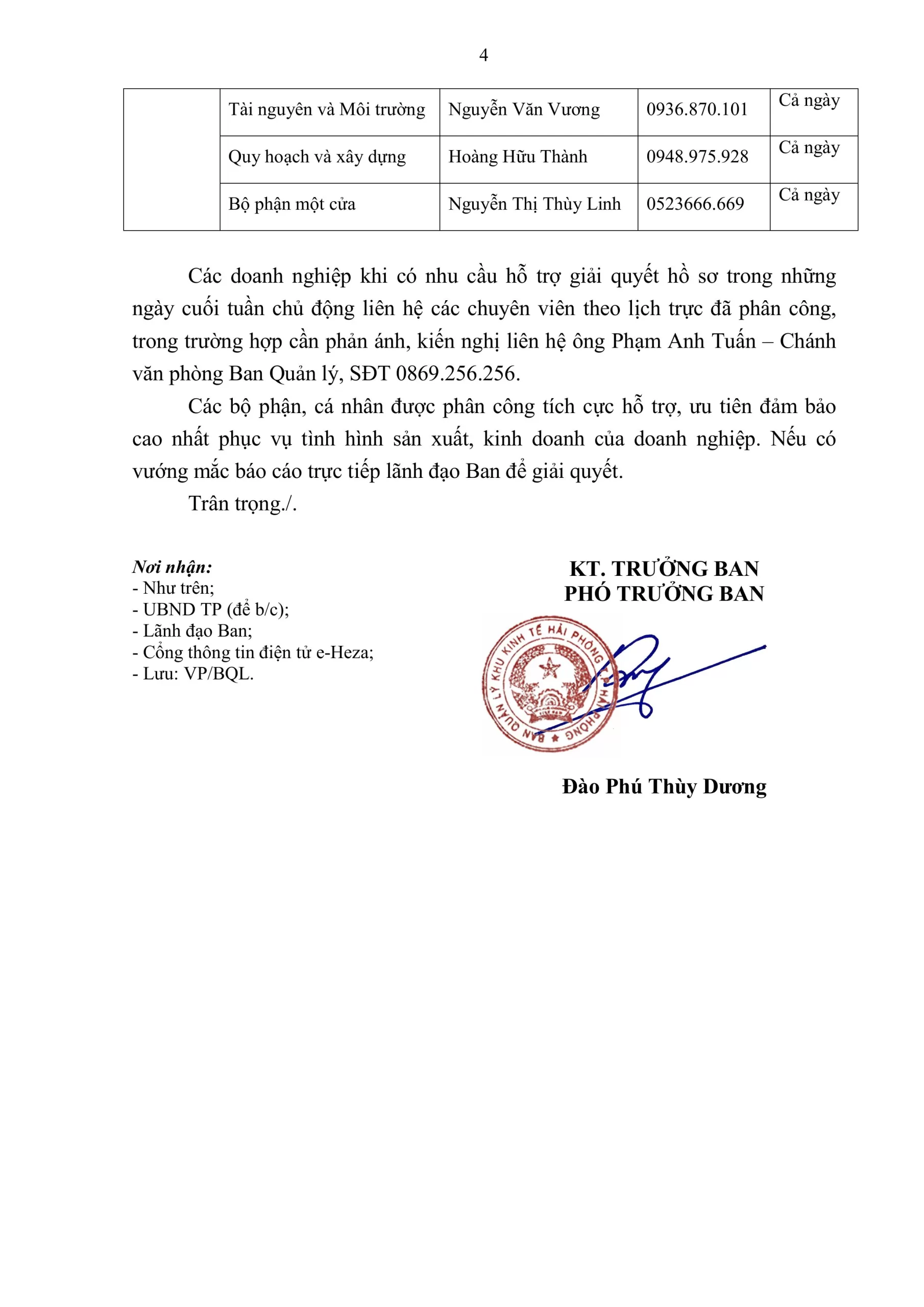 Với tinh thần “doanh nghiệp là trung tâm,” Ban Quản lý đã công khai danh sách lãnh đạo, chuyên viên trực cùng số điện thoại liên hệ chi tiết, tạo điều kiện để doanh nghiệp dễ dàng kết nối khi cần hỗ trợ. Trong trường hợp cần phản ánh, kiến nghị liên hệ ông Phạm Anh Tuấn – Chánh văn phòng Ban Quản lý theo số điện thoại: 0869.256.256.