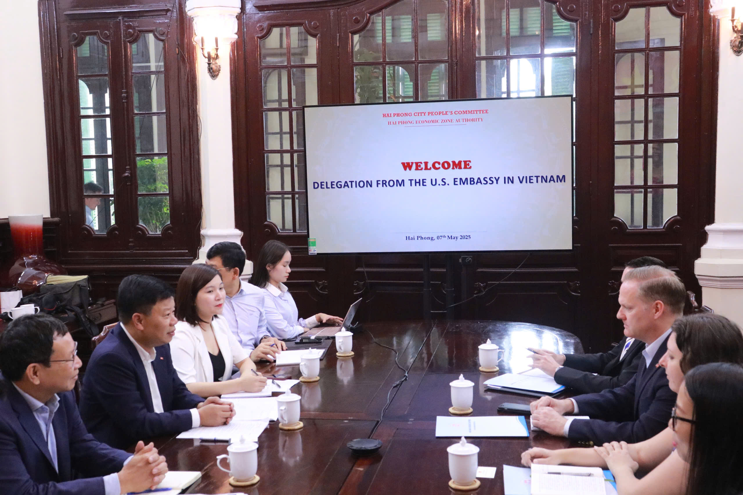 Buổi làm việc diễn ra trong không khí cởi mở, thân thiện, đánh dấu bước tiến quan trọng trong hợp tác giữa Hải Phòng và các đối tác Hoa Kỳ, hướng tới mục tiêu phát triển kinh tế bền vững, cân bằng thương mại và hội nhập quốc tế.