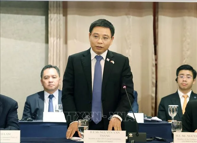 Đánh giá cao vai trò tiên phong, năng lực công nghệ và tầm nhìn toàn cầu của các tập đoàn, trong đó có nhiều doanh nghiệp dẫn đầu thế giới trong lĩnh vực bán dẫn, năng lượng sạch, tài chính số, công nghiệp sinh học, logistics và văn hóa sáng tạo, Bộ trưởng Nguyễn Văn Thắng tin tưởng với sự tham gia tích cực của các tập đoàn, doanh nghiệp và tổ chức hàng đầu, cùng sự hỗ trợ từ Chính phủ hai nước, hai bên sẽ cùng nhau kiến tạo những mô hình hợp tác hiệu quả, bền vững và mang tính đột phá. Bộ Tài chính cam kết sẽ cùng các bộ, ngành và địa phương đồng hành, tạo điều kiện thuận lợi để các doanh nghiệp Hàn Quốc và Việt Nam hợp tác đầu tư kinh doanh thành công, góp phần tạo ra các giá trị bền vững và gắn kết sâu sắc hơn nữa lợi ích chung, đem lại sự phồn vinh và thịnh vượng cho cả hai bên.