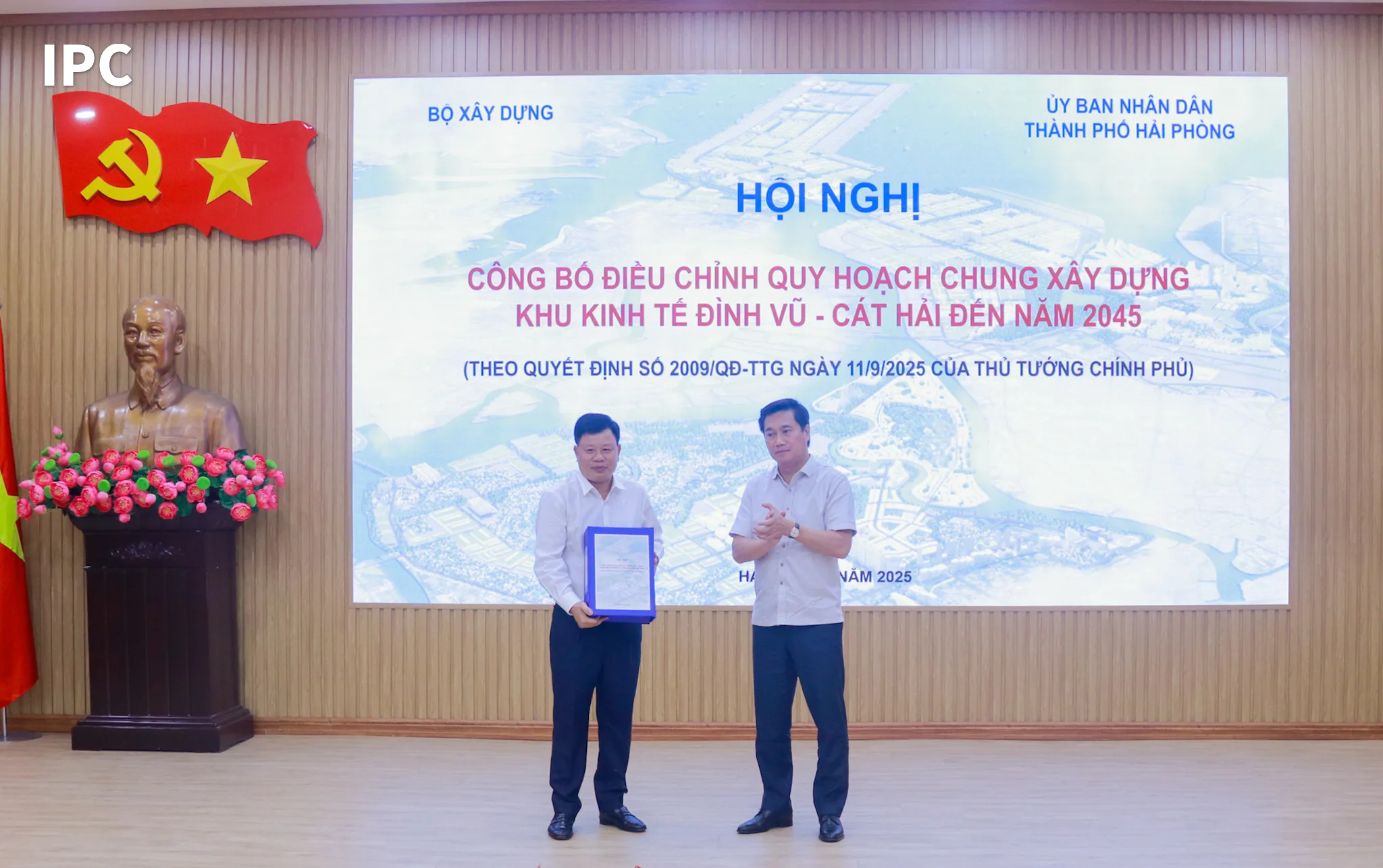Tại Hội nghị đã công bố Quyết định số 2009/QĐ-TTg, ngày 11/9/2025 của Thủ tướng Chính phủ phê duyệt Điều chỉnh Quy hoạch chung xây dựng Khu kinh tế Đình Vũ – Cát Hải đến năm 2045.
