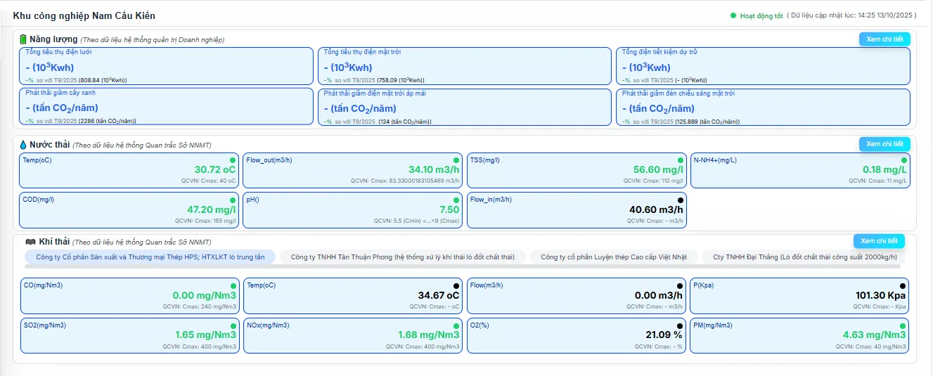 Các chỉ số Môi Trường của Khu công nghiệp Nam cầu Kiền – 14:25 – 13/10/2025