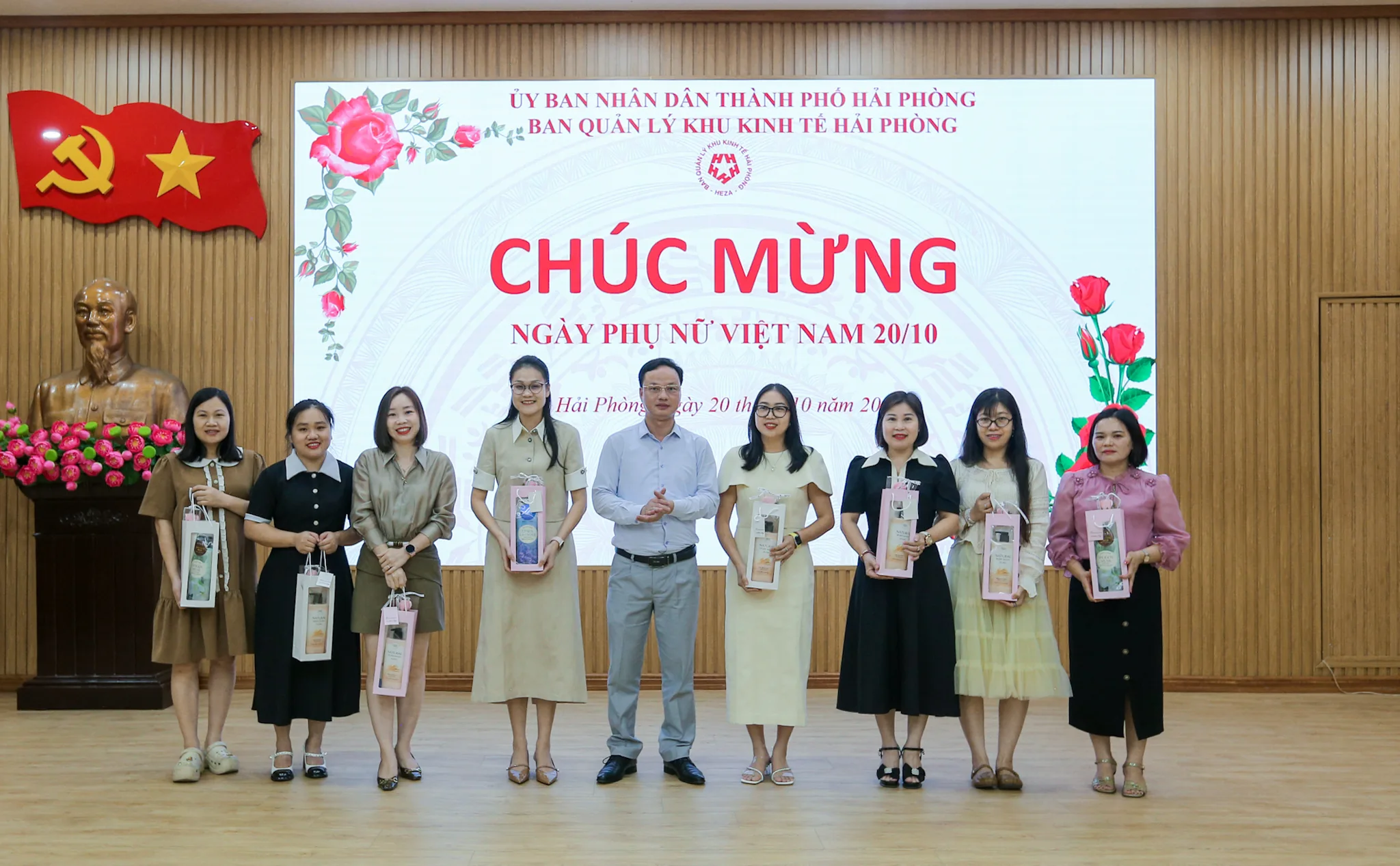 Sáng ngày 20/10, trong không khí vui tươi, phấn khởi của cả nước hướng tới kỷ niệm 95 năm Ngày thành lập Hội Liên hiệp Phụ nữ Việt Nam (20/10/1930 – 20/10/2025), Ban Quản lý Khu kinh tế Hải Phòng đã tổ chức buổi gặp mặt thân mật, ấm cúng nhằm tri ân và tôn vinh những đóng góp quan trọng của nữ cán bộ, công chức (CBCC) và người lao động đang công tác tại cơ quan.