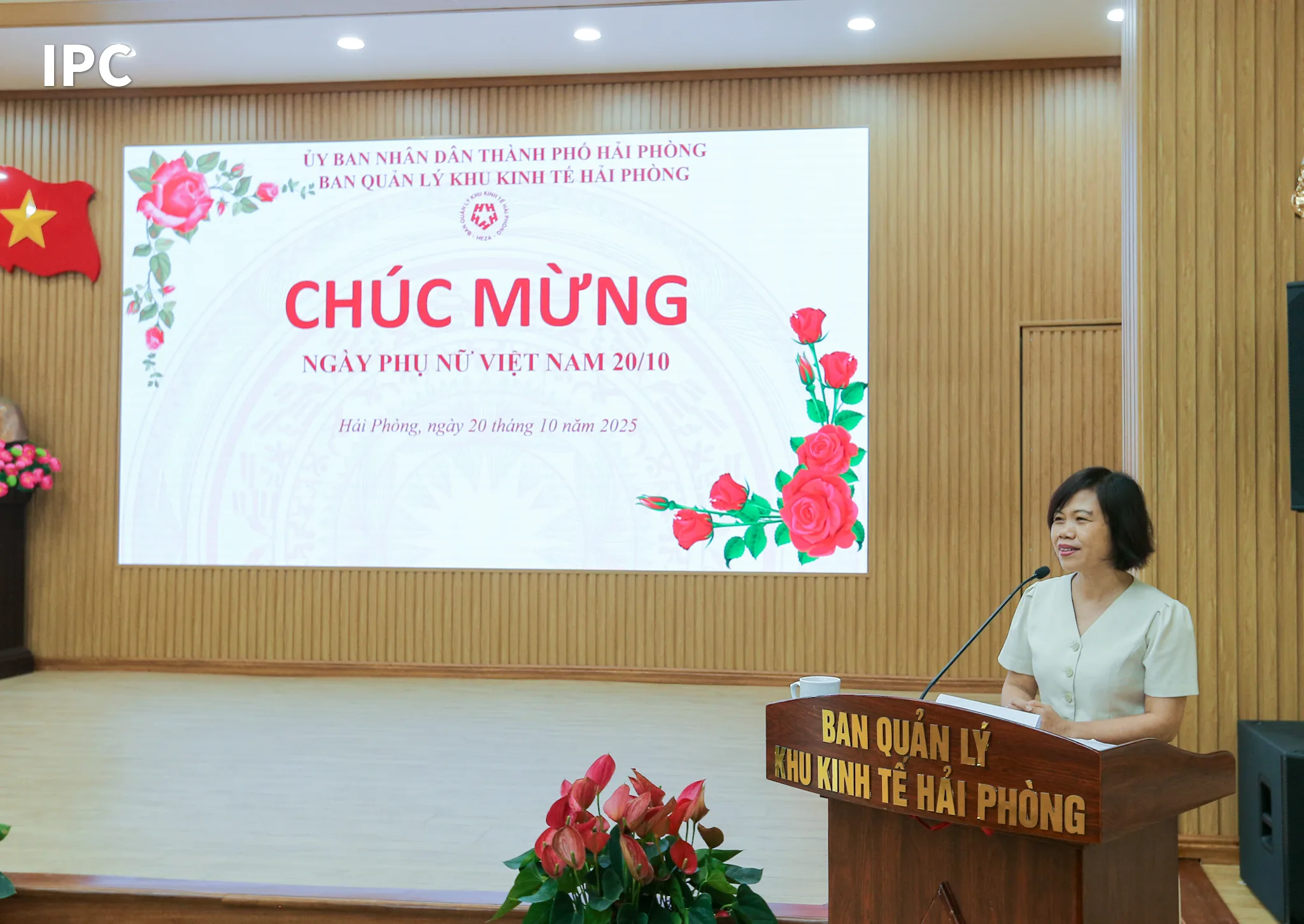 Đồng chí Lê Trung Kiên – Ủy viên Ban Thường vụ Thành ủy, Bí thư Đảng ủy, Trưởng Ban Ban Quản lý Khu kinh tế Hải Phòng, đã gửi lời chúc mừng nồng nhiệt, chúc sức khỏe, hạnh phúc và thành công tới toàn thể chị em. Đồng chí ghi nhận những đóng góp quan trọng và thầm lặng của đội ngũ nữ CBCC, NLĐ trong việc xây dựng tập thể cơ quan ngày càng đoàn kết, vững mạnh, góp phần vào sự phát triển chung của Khu kinh tế Hải Phòng.