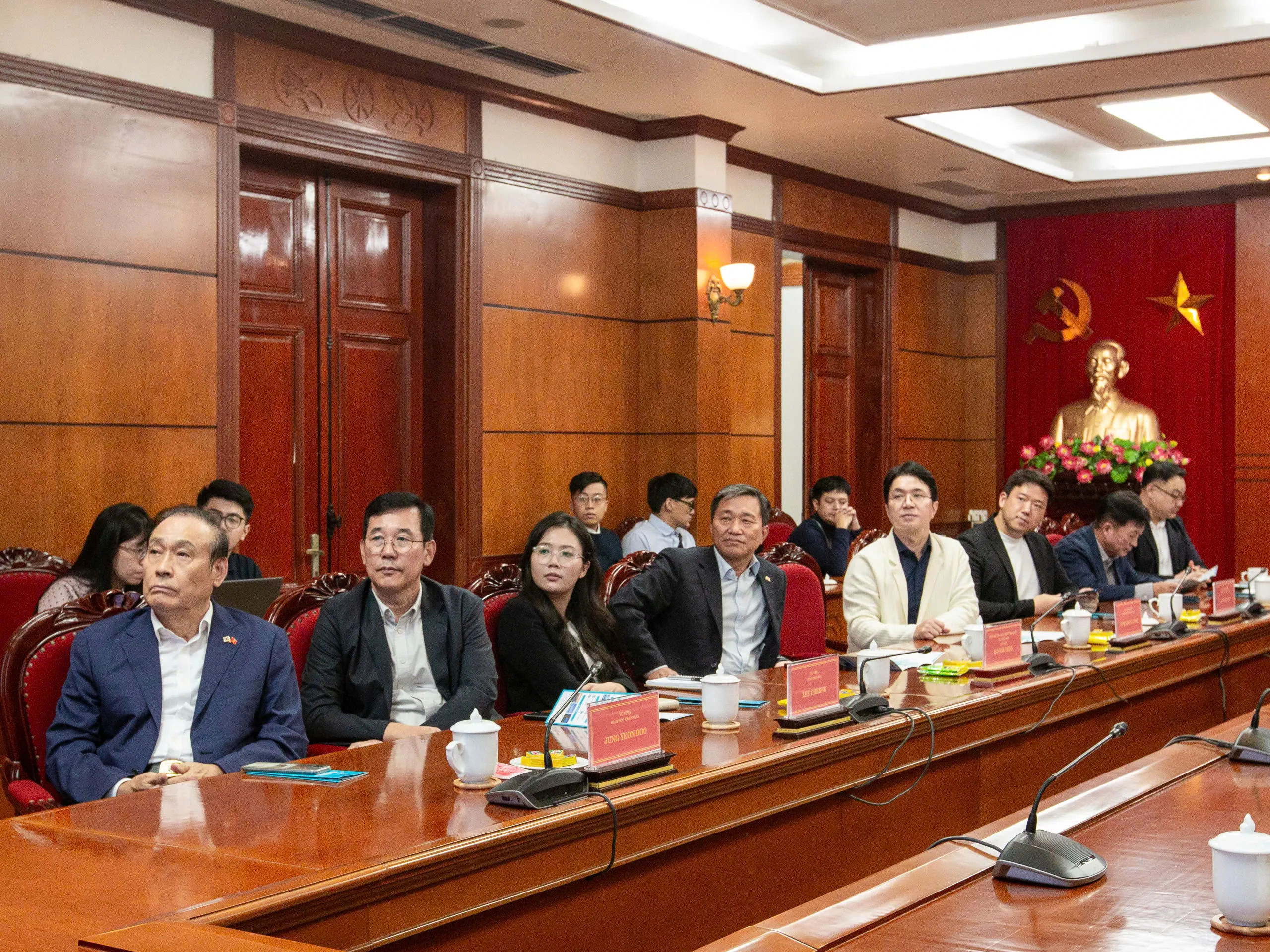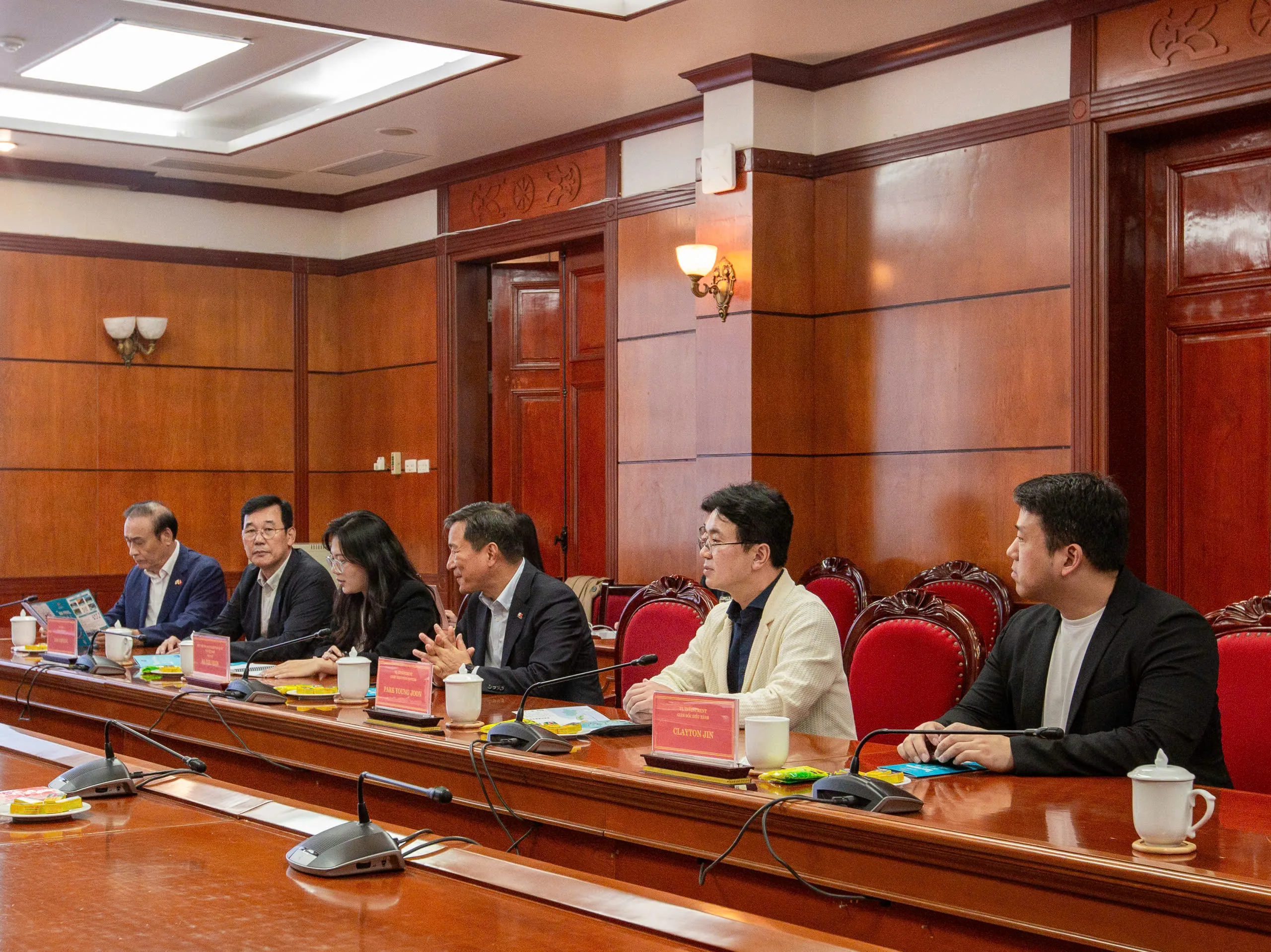 Về phía đoàn KoCham có ông Park Young Joon – Tổng Giám đốc điều hành Công ty VL Investment, ông Clayton Jin – Giám đốc điều hành Công ty VL Investment, ông Lee Cheong – Tổng Giám đốc Công ty VL VINA, và ông Jung Yeon Doo – Giám đốc pháp nhân Công ty VL VINA.