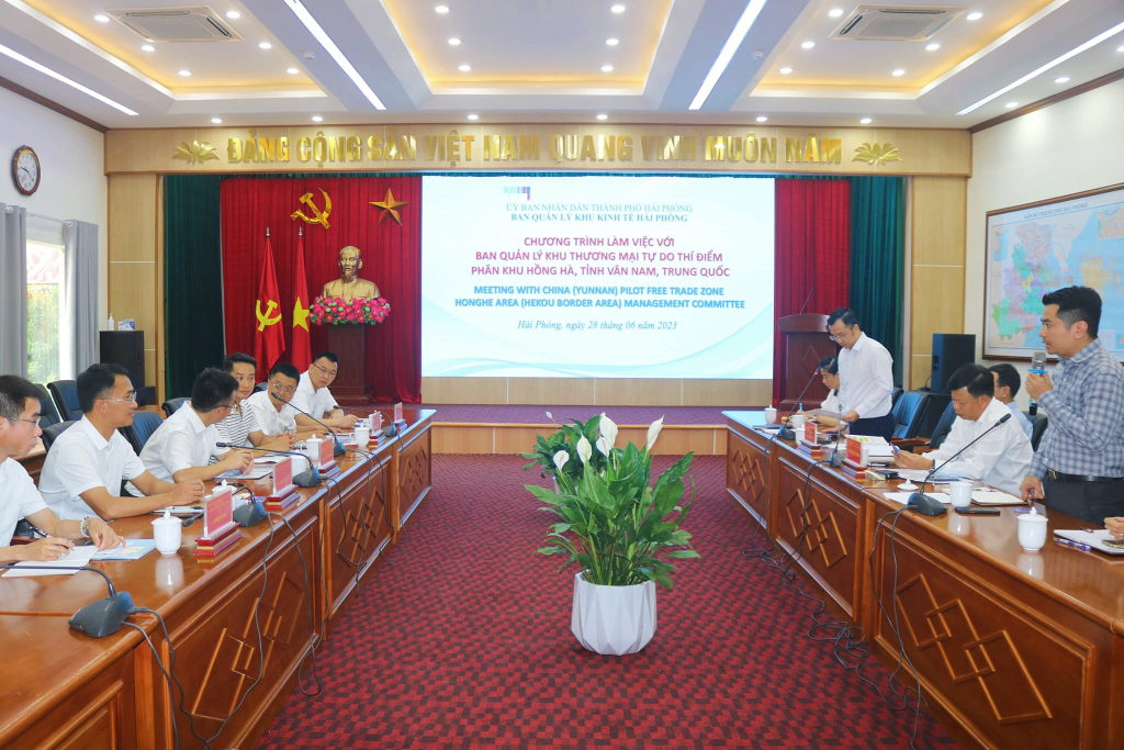 Ngày 28/6/2023, Đoàn công tác Ban Quản lý Khu thương mại tự do thí điểm phân khu Hồng Hà, tỉnh Vân Nam Trung Quốc thăm và làm việc với đại diện Ban Quản lý Khu kinh tế Hải Phòng