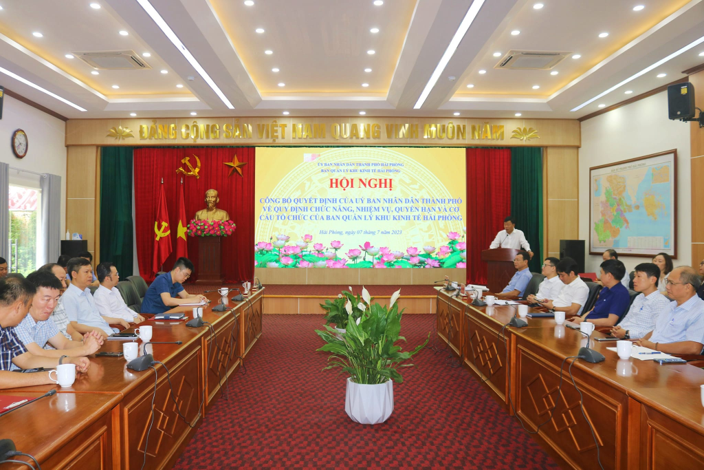 Ngày 07/7/2023, Ban Quản lý Khu kinh tế Hải Phòng tổ chức Hội nghị công bố quyết định của UBND thành phố về việc ban hành Quy định chức năng, nhiệm vụ, quyền hạn và cơ cấu tổ chức của Ban Quản lý Khu Kinh tế Hải Phòng.