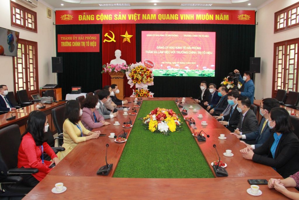 Ngay sau lễ dâng hương, đoàn đại biểu Đảng ủy Khu kinh tế Hải Phòng đã có cuộc làm việc với lãnh đạo Trường Chính trị Tô Hiệu. Tại buổi làm việc, hai bên đã thống nhất sẽ tăng cường hơn nữa công tác phối hợp trong các hoạt động nhất là công tác bồi dưỡng cán bộ, nghiên cứu lý luận, tổng kết thực tiễn, góp phần thực hiện nhiệm vụ xây dựng Đảng của Đảng bộ thành phố trong tình hình mới.