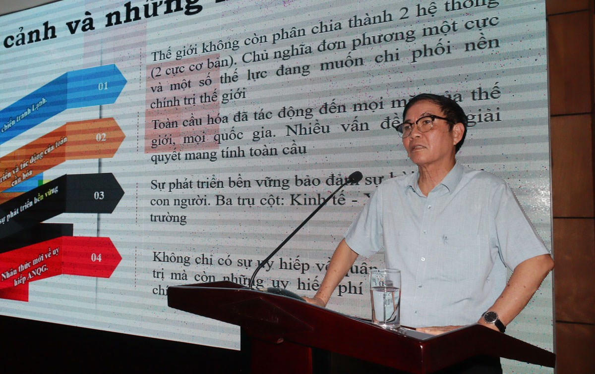 Báo cáo viên Viện An ninh phi truyền thống, Đại học Quốc gia Hà Nội truyền đạt tại hội nghị