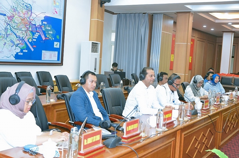 Các đại biểu đến từ Indonesia lắng nghe chia sẻ của Ban Quản lý Khu kinh tế Hải Phòng về vai trò của chính quyền địa phương trong phát triển KCN sinh thái tại Hải Phòng