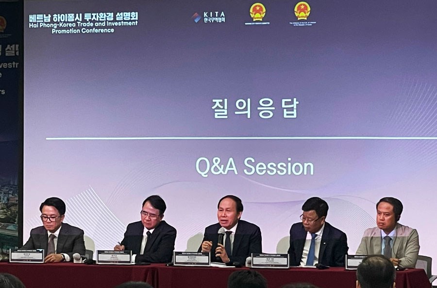 Tại hội nghị, đoàn công tác của thành phố Hải Phòng và đại diện các doanh nghiệp kinh doanh hạ tầng, dịch vụ trong Khu công nghiệp, Khu kinh tế thành phố đã giới thiệu những thông tin tổng quan về tiềm năng, lợi thế, cơ hội đầu tư, chính sách thu hút đầu tư vào Hải Phòng; lắng nghe các ý kiến trao đổi, sự chia sẻ kinh nghiệm của các nhà đầu tư, doanh nghiệp Hàn Quốc lớn đã thành công tại thành phố Hải Phòng; giải đáp, làm rõ các quan tâm của các doanh nghiệp trong quá trình tìm hiểu và đầu tư vào thành phố.