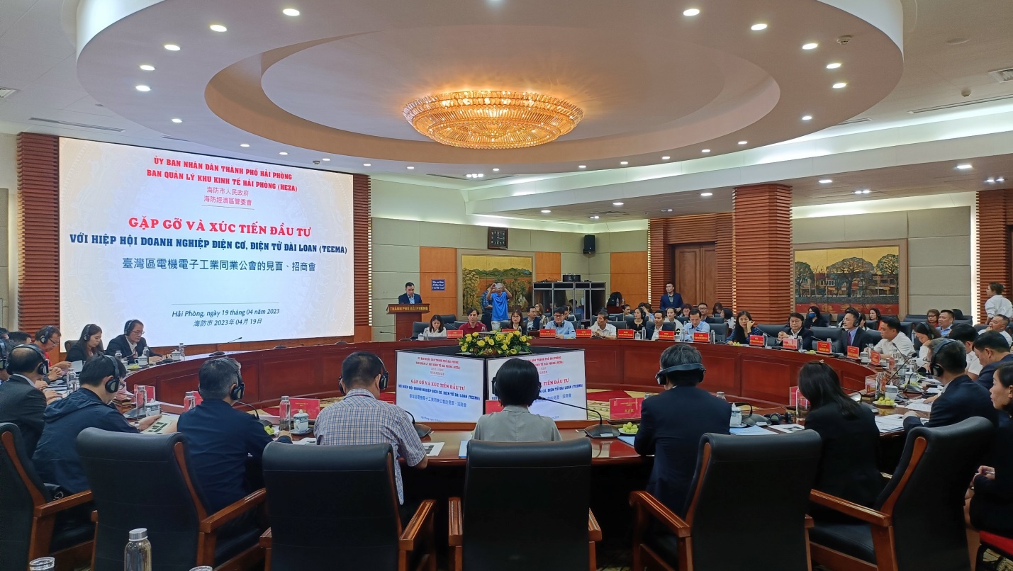 Ngày 19/4/2023, Ban Quản lý Khu kinh tế Hải Phòng tổ chức Hội nghị gặp gỡ và xúc tiến đầu tư với Hiệp hội doanh nghiệp Điện cơ – Điện tử Đài Loan (Trung Quốc) – TEEMA.