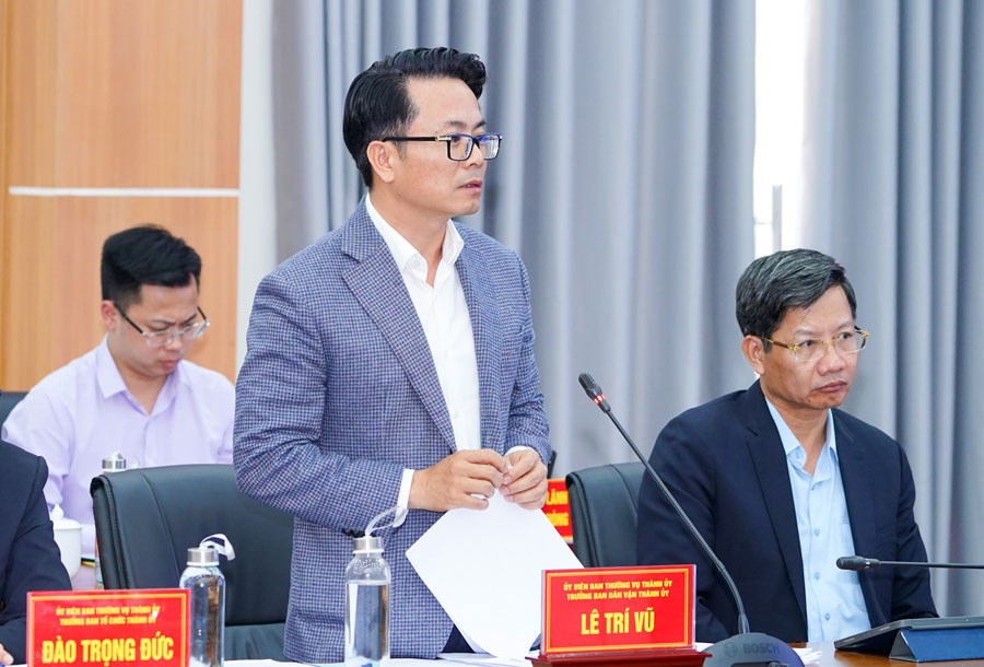 Đồng chí Lê Trí Vũ – Trưởng ban Dân vận Thành ủy phát biểu ý kiến
