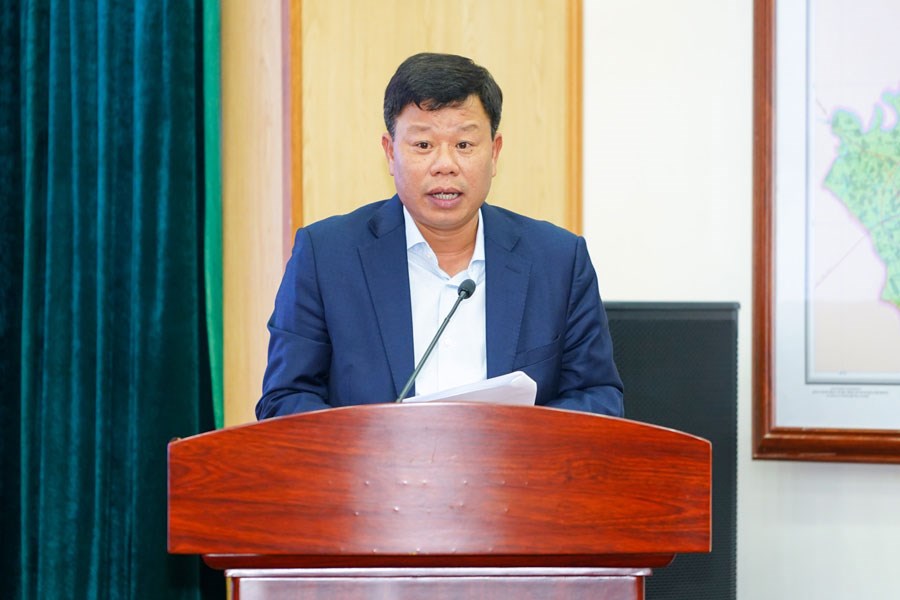 Đồng chí Bùi Ngọc Hải – Phó Trưởng ban Ban Quản lý Khu kinh tế Hải Phòng báo cáo tại buổi làm việc