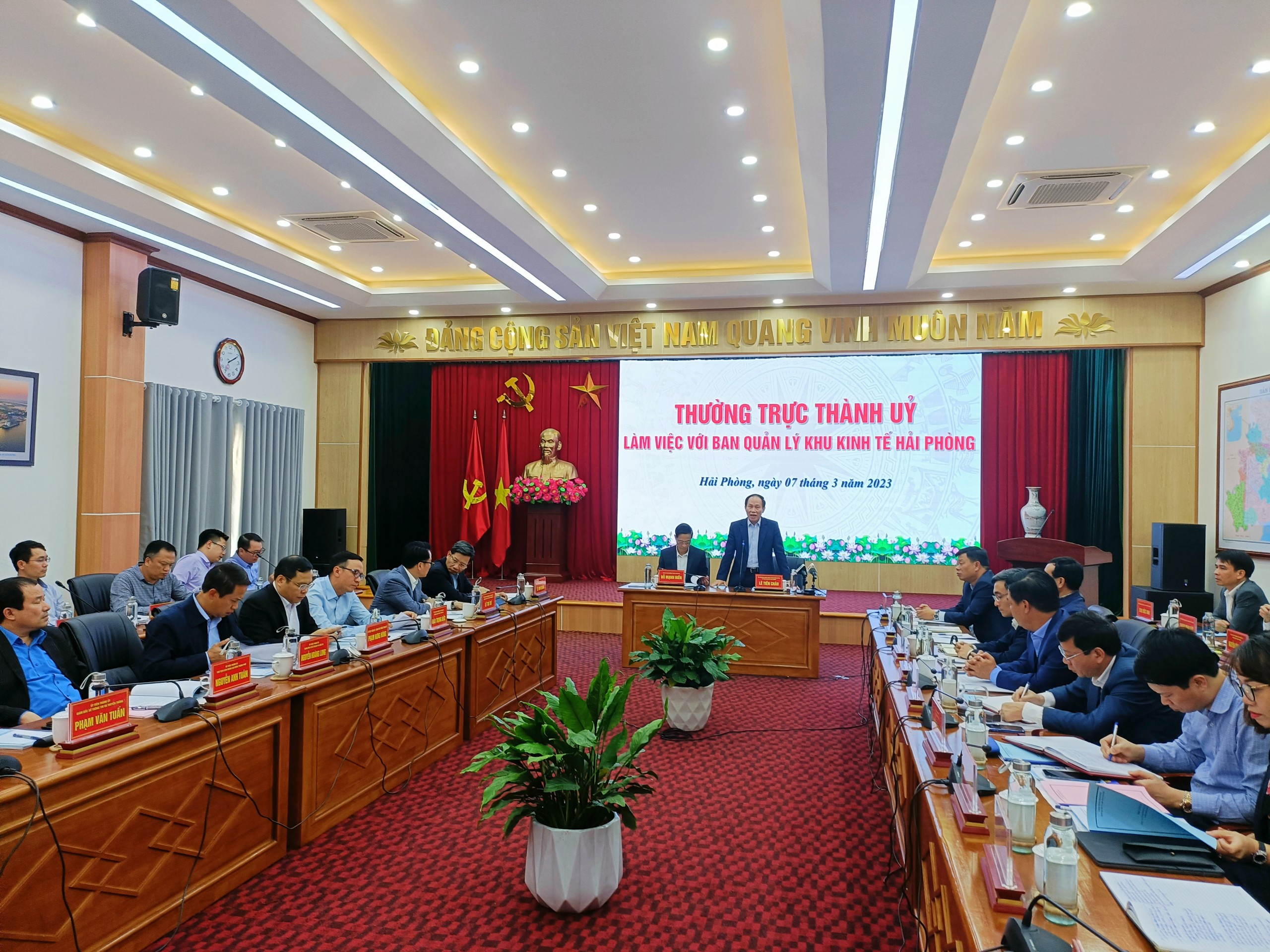 Ngày 07/3/2023, Thường trực Thành ủy làm việc với Ban Quản lý Khu kinh tế Hải Phòng về kết quả thực hiện Nghị quyết Đại hội Đảng lần thứ XIII, Nghị quyết Đại hội Đảng bộ thành phố lần thứ XVI, Nghị quyết Đại hội Đảng bộ Khu kinh tế lần thứ IV; tình hình thực hiện nhiệm vụ kinh tế – xã hội 3 tháng đầu năm 2023; phương hướng, nhiệm vụ trong thời gian tới.