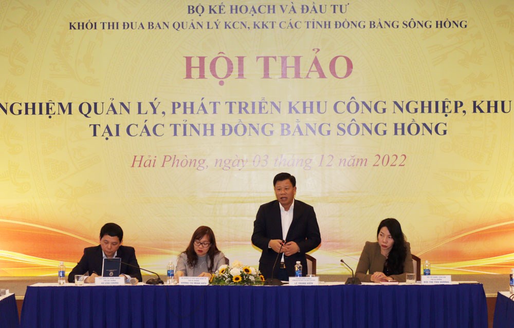 Phát biểu tại Hội thảo, đồng chí Lê Trung Kiên, Trưởng Ban Quản lý Khu kinh tế Hải Phòng đã nêu một số kinh nghiệm của Hải Phòng trong quy hoạch, phát triển các Khu công nghiệp; xây nhà ở công nhân; cải cách hành chính; chuyển đổi số; xúc tiến đầu tư. Đồng thời cho biết, trên cơ sở chia sẻ, thảo luận, kiến nghị, đề xuất và thống nhất của các Ban Quản lý Khu công nghiệp, Khu kinh tế, Khu chế xuất các tỉnh Đồng bằng sông Hồng, Ban Quản lý Khu kinh tế Hải Phòng sẽ tổng hợp văn bản báo cáo Bộ Kế hoạch và Đầu tư và các cơ quan có thẩm quyền để xem xét, tháo gỡ.