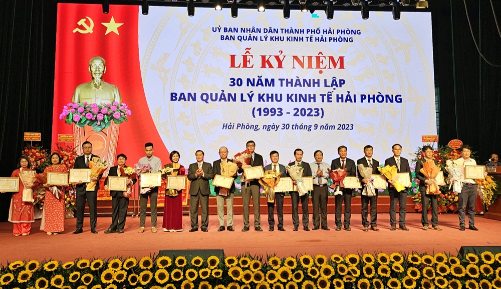 Nhân dịp này, Ban Quản lý Khu kinh tế Hải Phòng được nhận Cờ thi đua xuất sắc năm 2022 của Bộ Kế hoạch và Đầu tư; Thành ủy – HĐND – UBND – Ủy ban MTTQ Việt Nam thành phố trao tặng bức trướng tặng Ban Quản lý Khu kinh tế Hải Phòng 30 năm Đoàn kết – Đổi mới – Hội nhập và Phát triển. Nhiều tập thể, cá nhân được nhận Bằng khen của Bộ Kế hoạch và Đầu tư, và Chủ tịch UBND thành phố Hải Phòng.