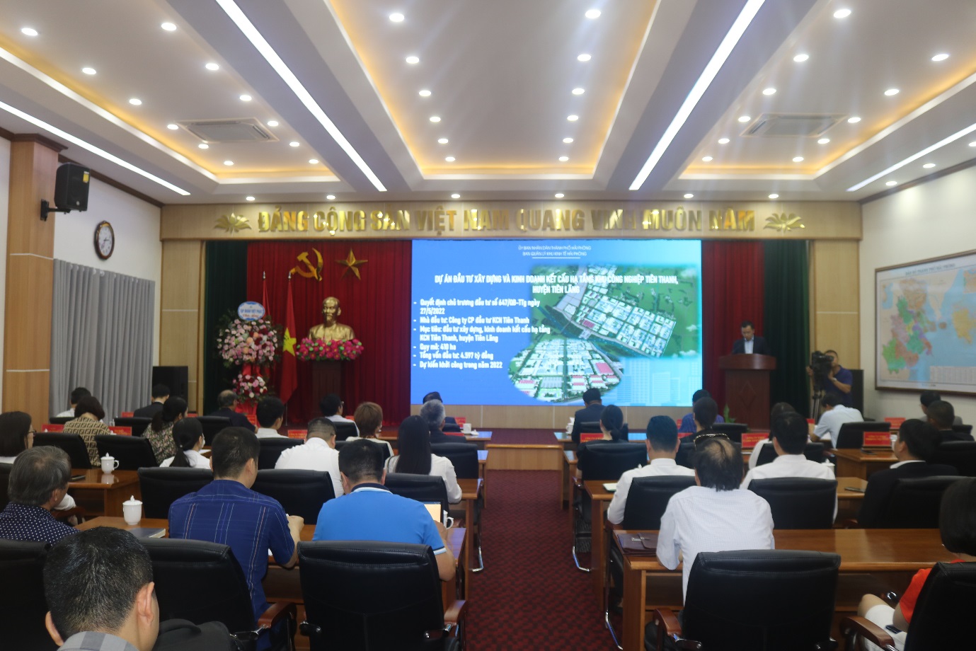 Thực hiện chương trình công tác năm, ngày 22/06/2022, Ban Quản lý Khu kinh tế Hải Phòng tổ chức Hội nghị trao Giấy chứng nhận đăng ký đầu tư cho dự án đầu tư xây dựng và kinh doanh cơ sở hạ tầng Khu công nghiệp Tiên Thanh, huyện Tiên Lãng và các dự án trong Khu công nghiệp, Khu kinh tế (KCN, KKT) trên địa bàn thành phố tháng 6 năm 2022. Ông Lê Trung Kiên – Ủy viên Ban Thường vụ Thành ủy, Trưởng Ban Quản lý Khu kinh tế Hải Phòng chủ trì Hội nghị.
