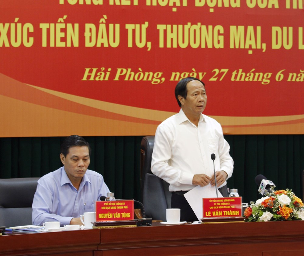 Sáng 27/6, UBND thành phố tổ chức Hội nghị Tổng kết hoạt động của Trung tâm Xúc tiến đầu tư, thương mại, du lịch thành phố và công bố các Quyết định của UBND thành phố về công tác cán bộ. Dự Hội nghị có các đồng chí Lê Văn Thành – Ủy viên Trung ương Đảng, Bí thư Thành ủy, Chủ tịch HĐND thành phố; Nguyễn Văn Tùng – Phó Bí thư Thành ủy, Chủ tịch UBND thành phố; Phạm Văn Hà – Ủy viên Ban Thường vụ, Trưởng Ban Tổ chức Thành ủy cùng đại diện lãnh đạo các cơ quan, ban ngành thành phố.