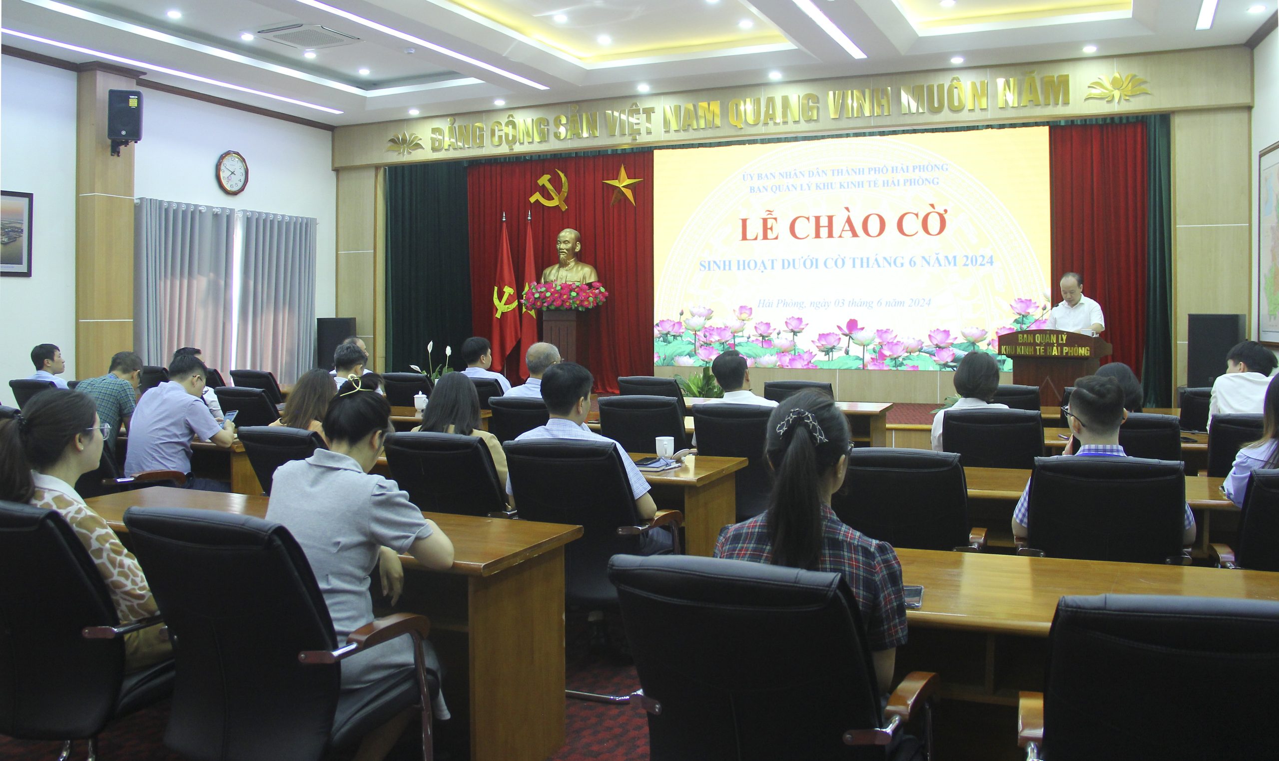 Ban Quản lý Khu Kinh tế Hải Phòng tổ chức buổi lễ chào cờ và sinh hoạt dưới cờ tháng 6/2024