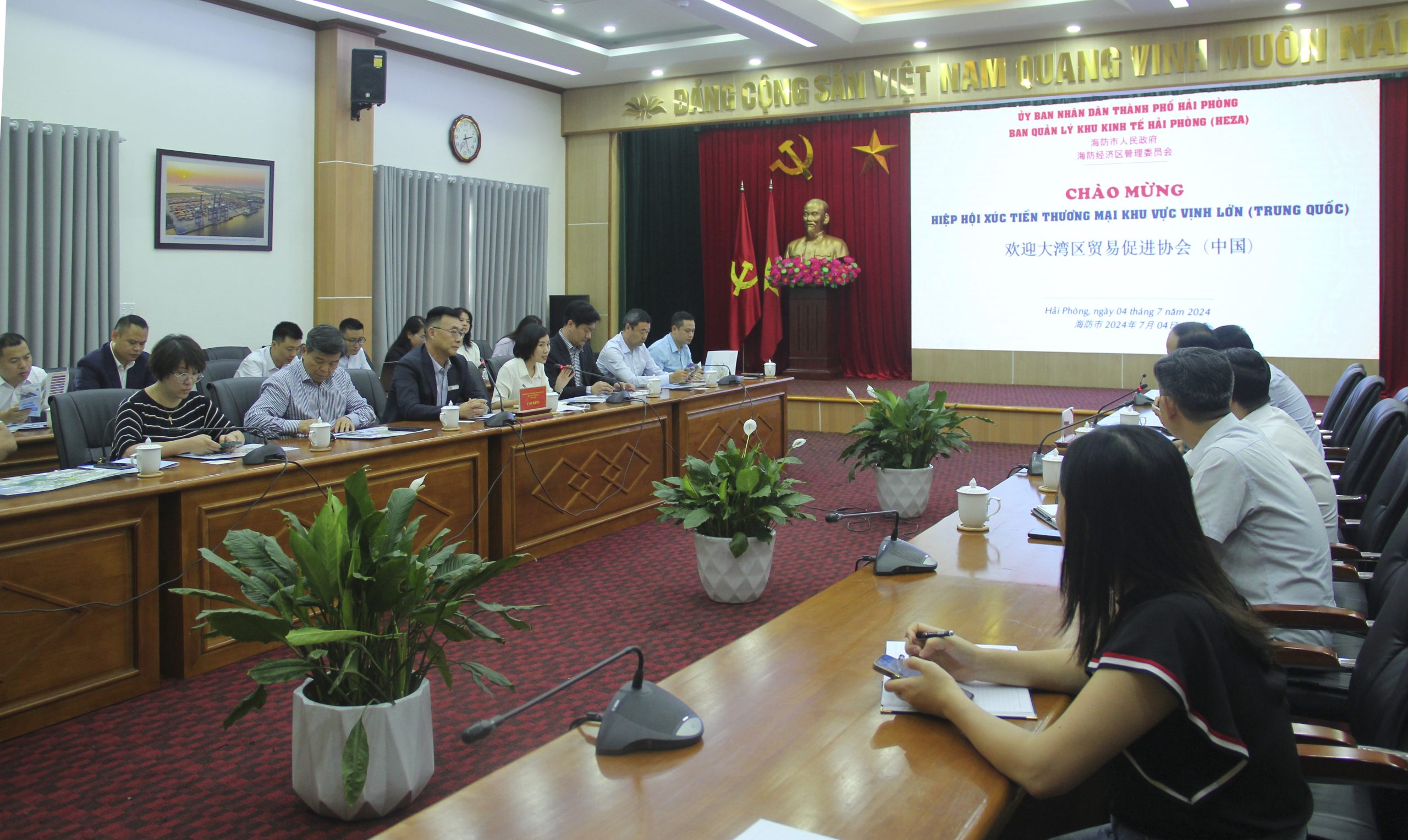 Đoàn Hiệp Hội Xúc Tiến Kinh tế Thương mại Khu vực Vịnh lớn Trung Quốc đến thăm và làm việc tại Ban quản lý Khu kinh tế Hải Phòng