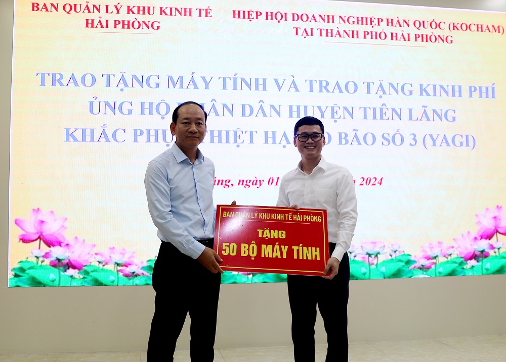 (HPĐT)- Chiều 1-10, tại UBND huyện Tiên Lãng, Ban Quản lý Khu Kinh tế Hải Phòng và Hiệp hội doanh nghiệp Hàn Quốc tại thành phố Hải Phòng tổ chức trao tặng máy tính và kinh phí ủng hộ Nhân dân huyện Tiên Lãng khắc phục thiệt hại do bão…