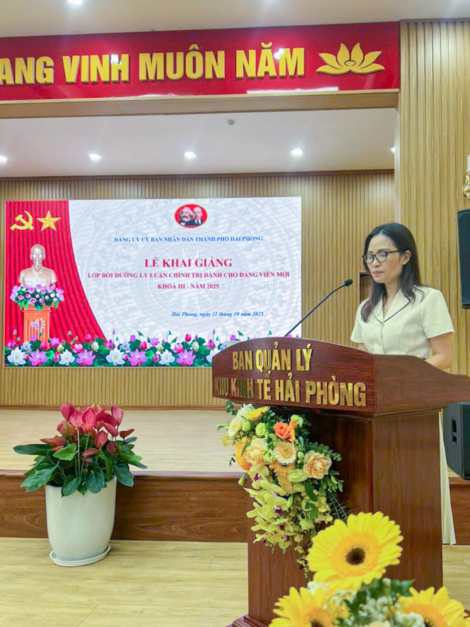 Sáng ngày 11/10/2025 , tại Hải Phòng, Đảng ủy Ban lý Khu Kinh tế Hải Phòng phân phối hợp với Ban Tuyên giáo và Dân ủy ban thành phố Hải Phòng đã tổ chức Lễ khai giảng lớp Lý luận Chính trị dành cho Đảng mới Khóa III/2025 theo kế…